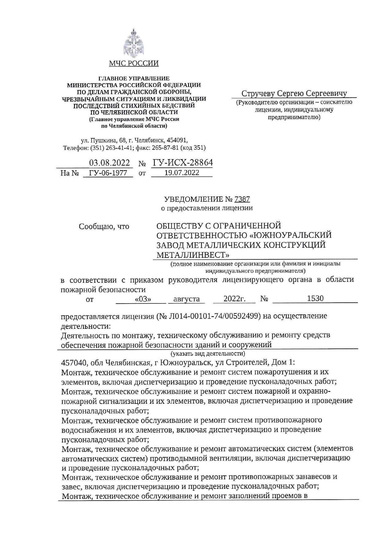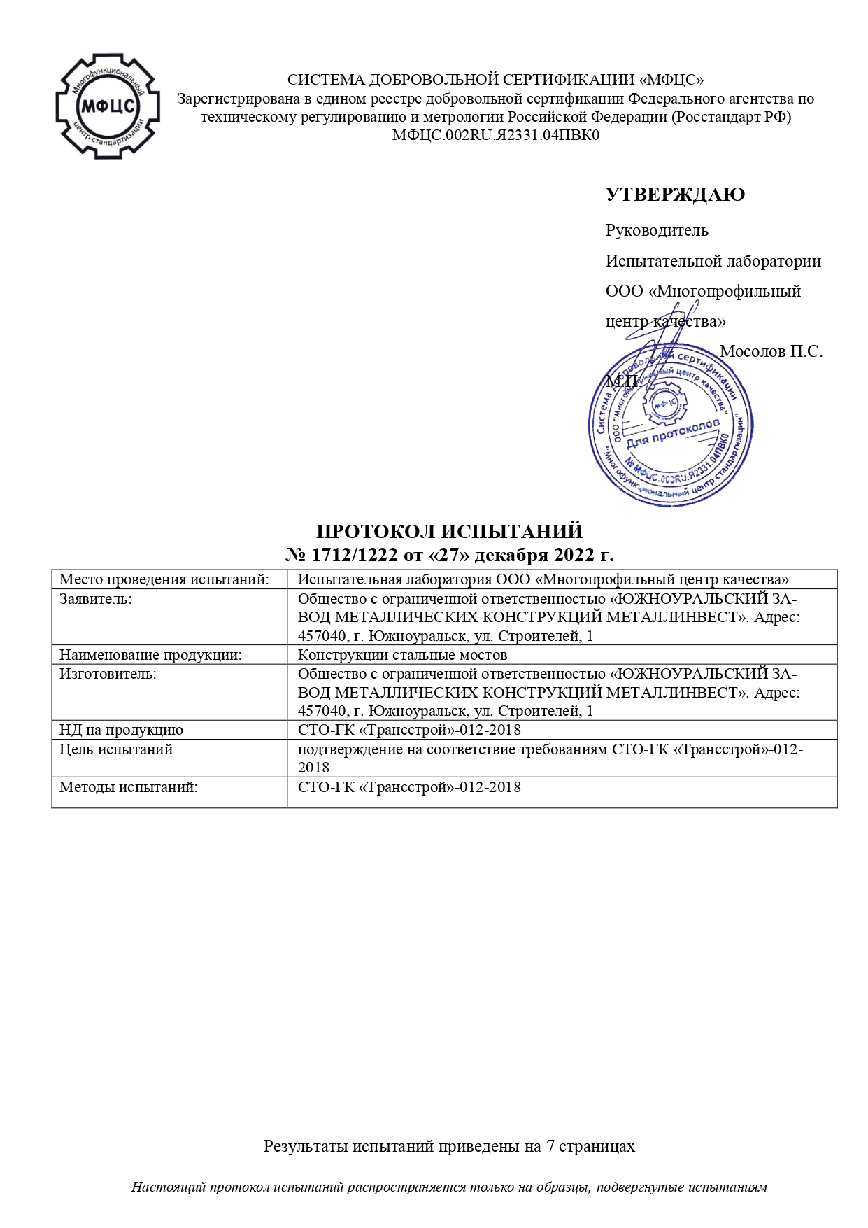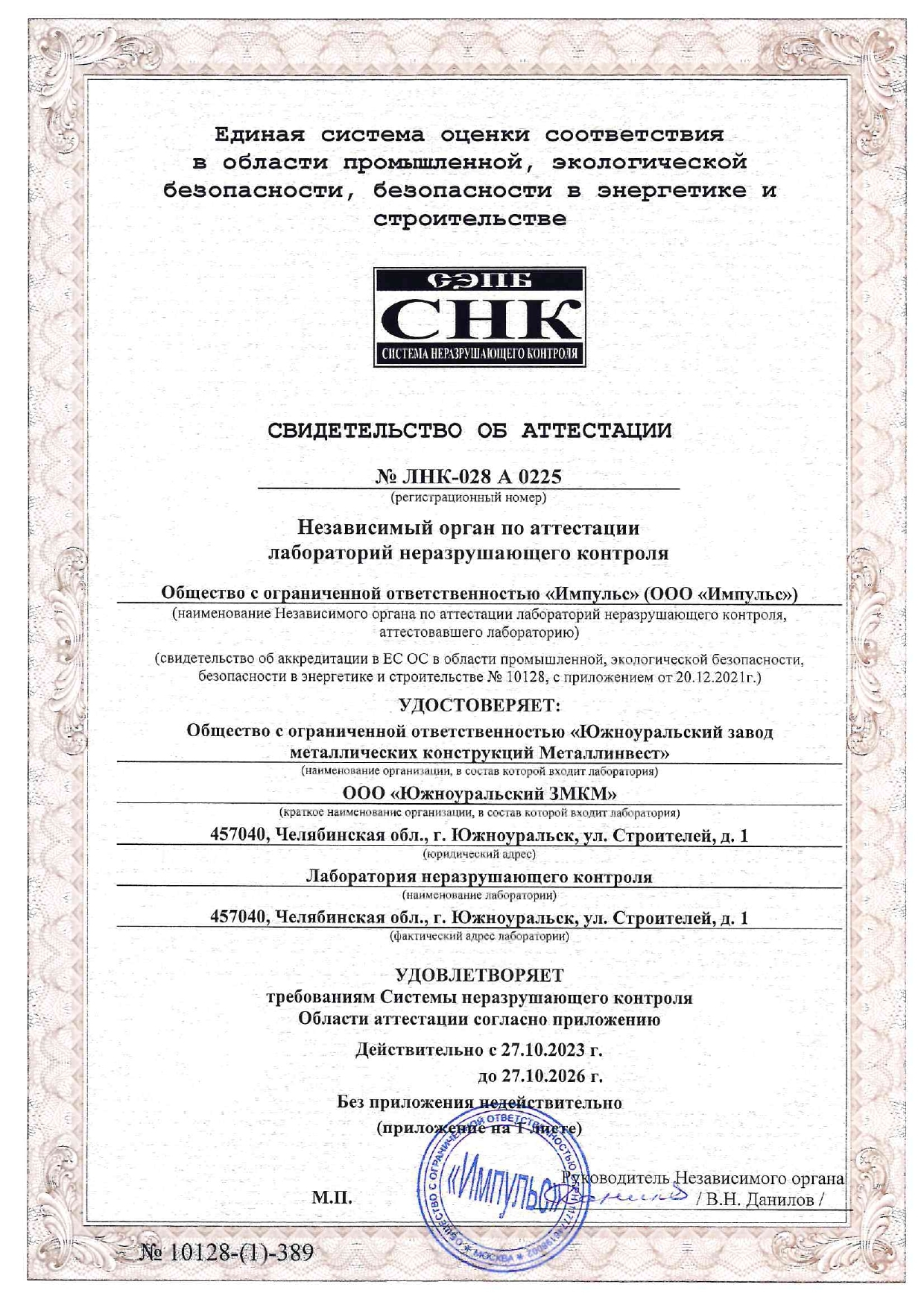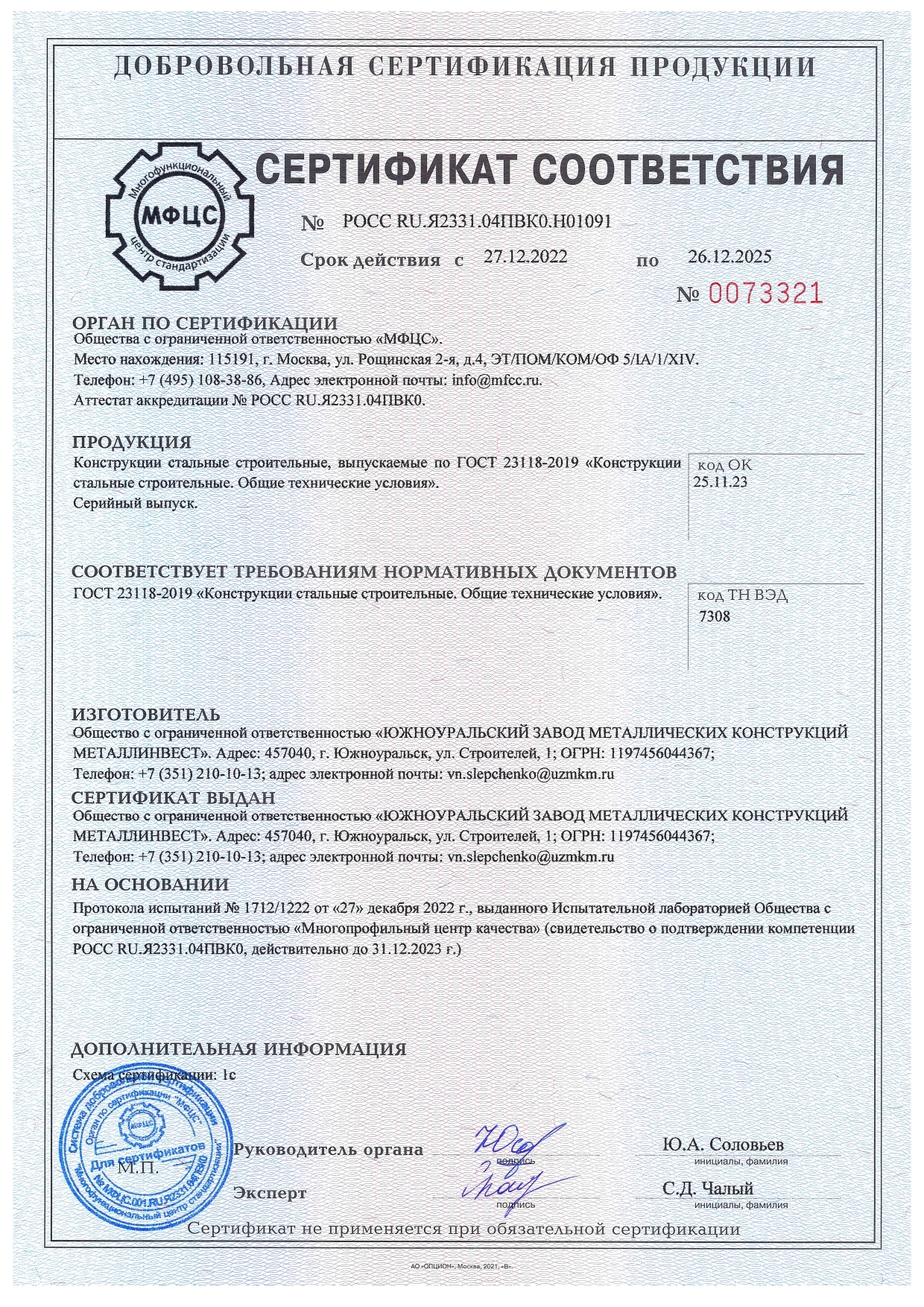 Южноуральский Завод Металлоконструкций Металлинвест - уделяет большое внимание качеству продукции. Вся продукция проходит своевременную сертификацию.